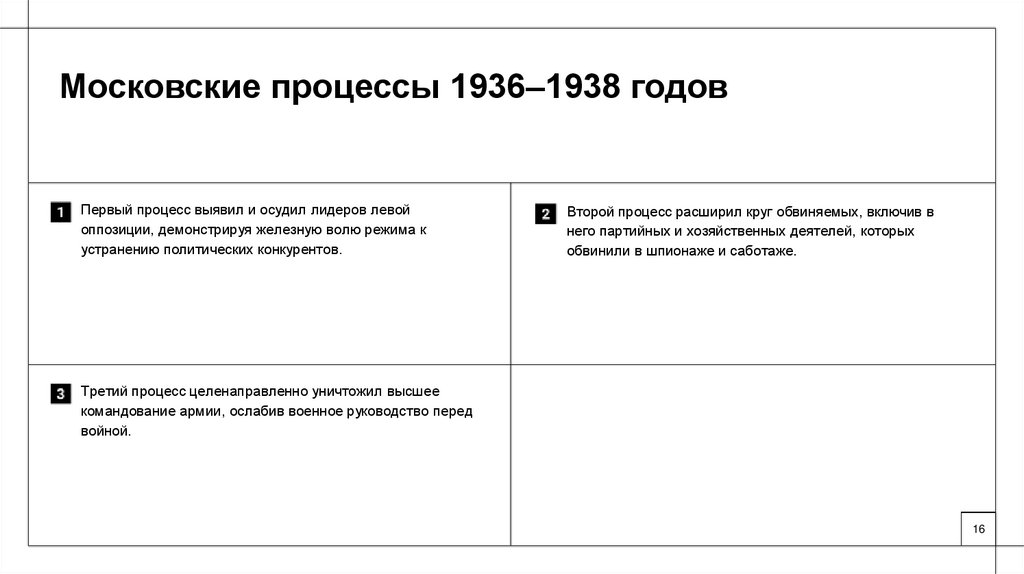 Московские процессы 1936–1938 годовПервый процесс выявил и осудил лидеров левой
