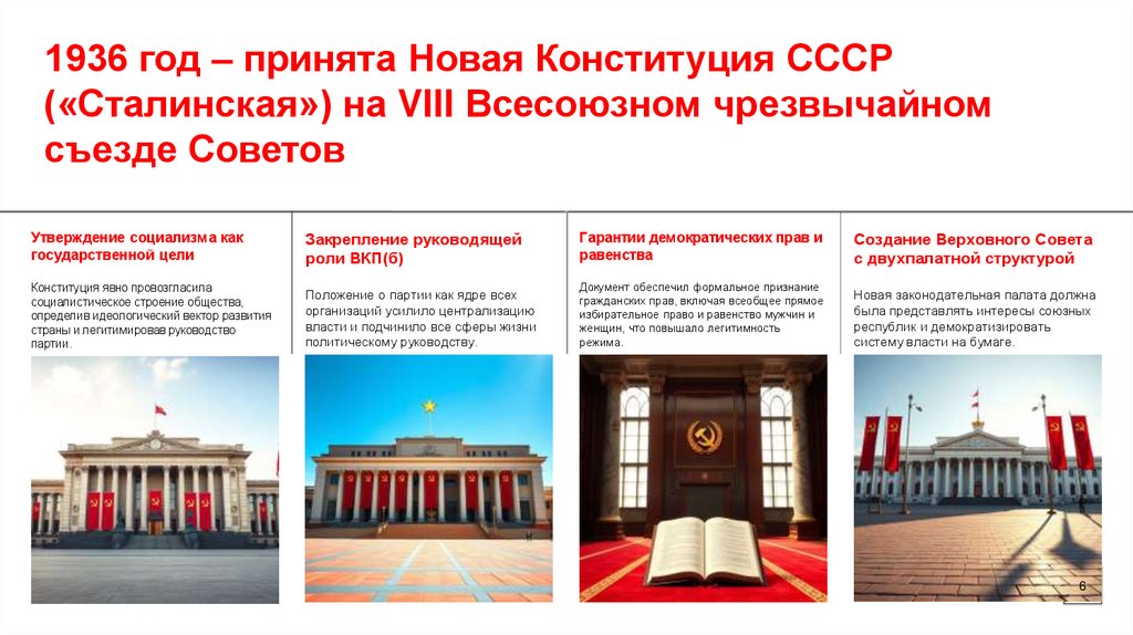 1936 год – принята Новая Конституция СССР(«Сталинская») на VIII Всесоюзном чрезвычайном