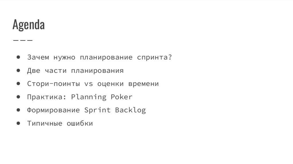 Agenda● Зачем нужно планирование спринта?