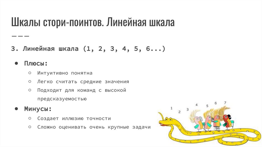 Шкалы стори-поинтов. Линейная шкала3. Линейная шкала (1, 2, 3, 4, 5, 6...)