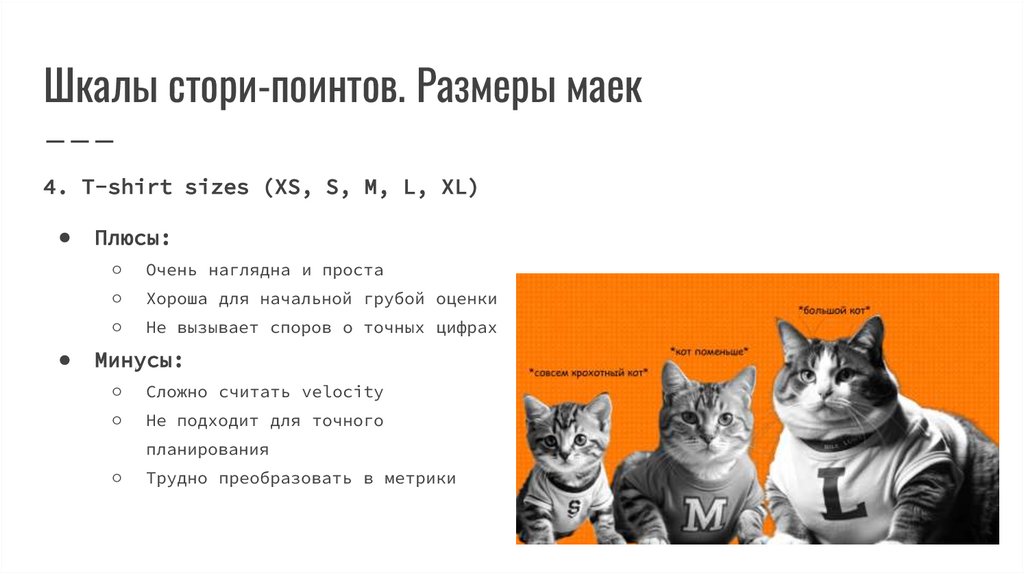 Шкалы стори-поинтов. Размеры маек4. T-shirt sizes (XS, S, M, L, XL)