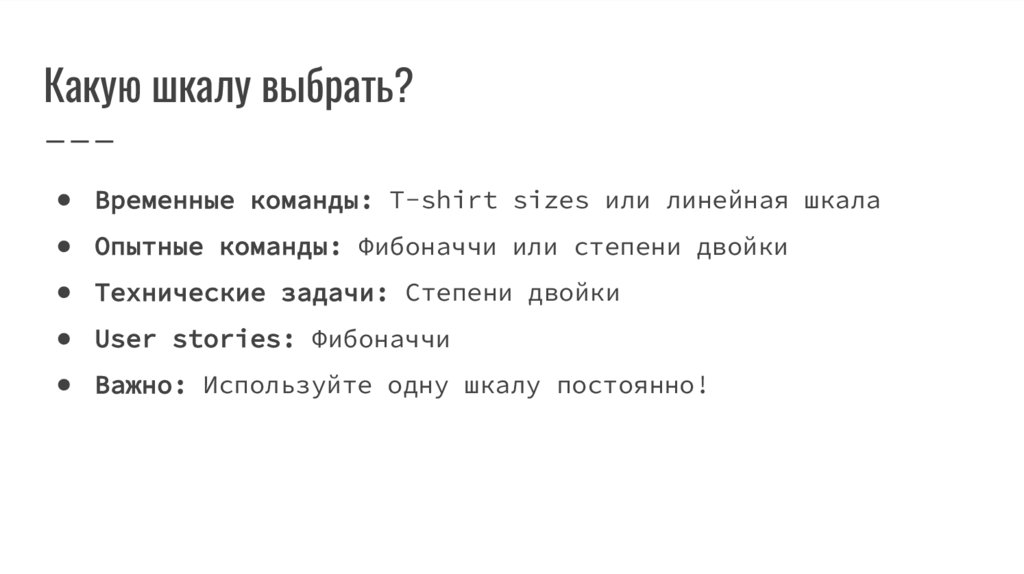 Какую шкалу выбрать?● Временные команды: T-shirt sizes или линейная шкала