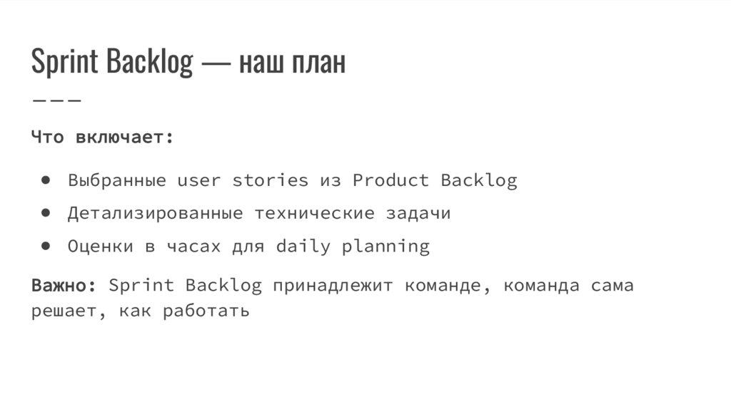 Sprint Backlog — наш планЧто включает: