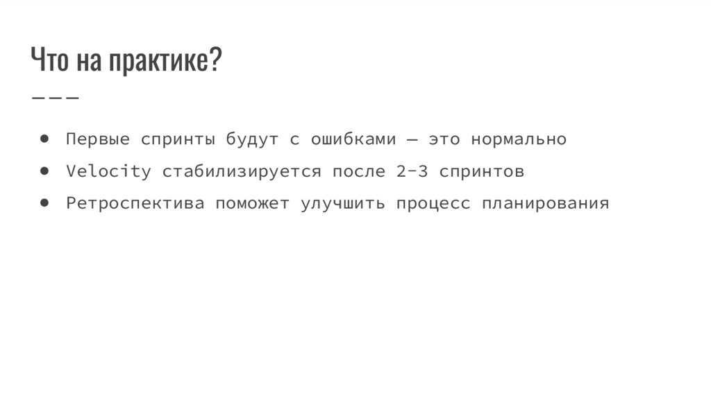 Что на практике?● Первые спринты будут с ошибками — это нормально