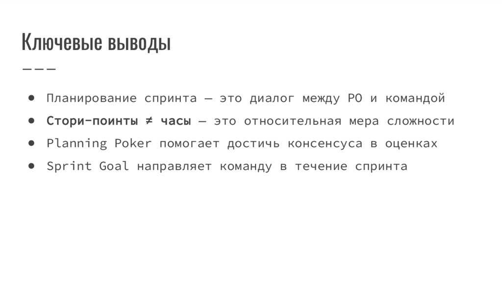 Ключевые выводы● Планирование спринта — это диалог между PO и командой