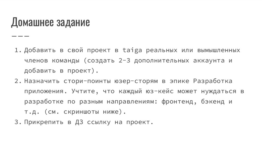 Домашнее задание1. Добавить в свой проект в taiga реальных или вымышленных