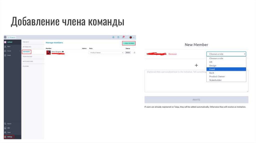 членов команды (создать 2-3 дополнительных аккаунта и