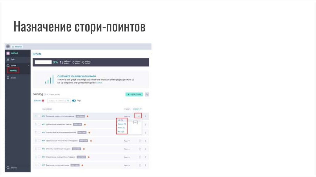 2. Назначить стори-поинты юзер-сторям в эпике Разработка