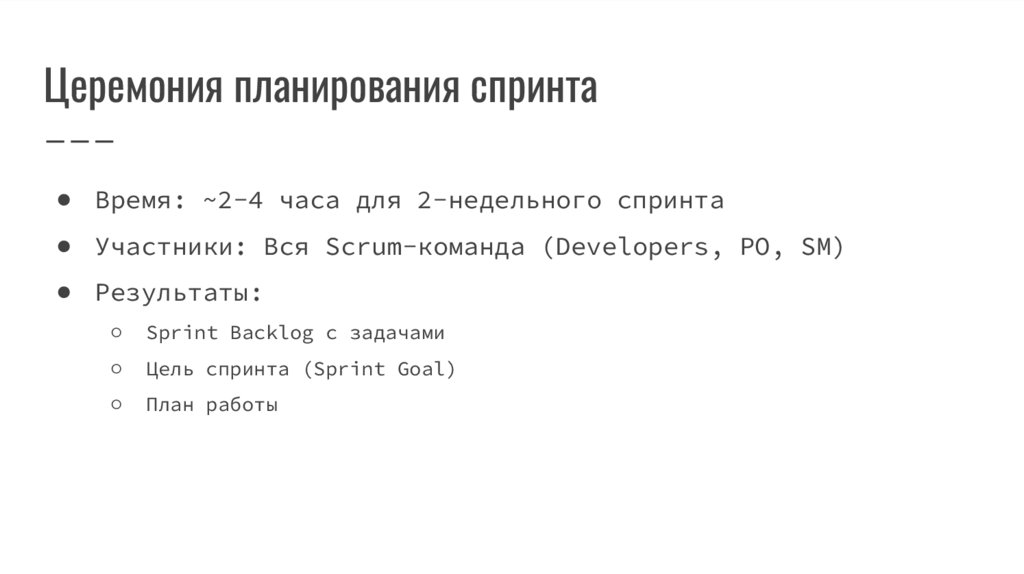 Церемония планирования спринта● Время: ~2-4 часа для 2-недельного спринта