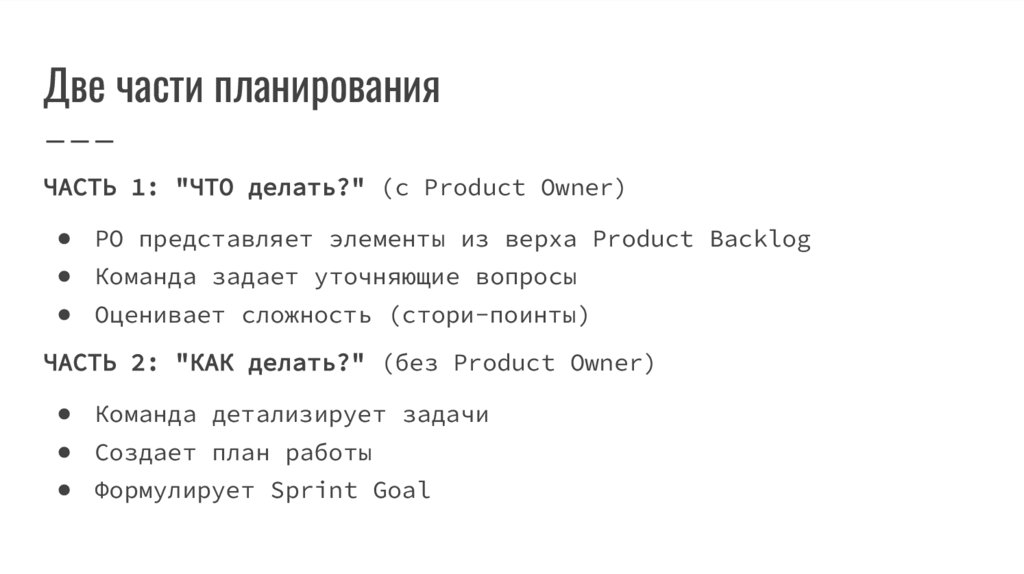 Две части планированияЧАСТЬ 1: "ЧТО делать?" (с Product Owner)