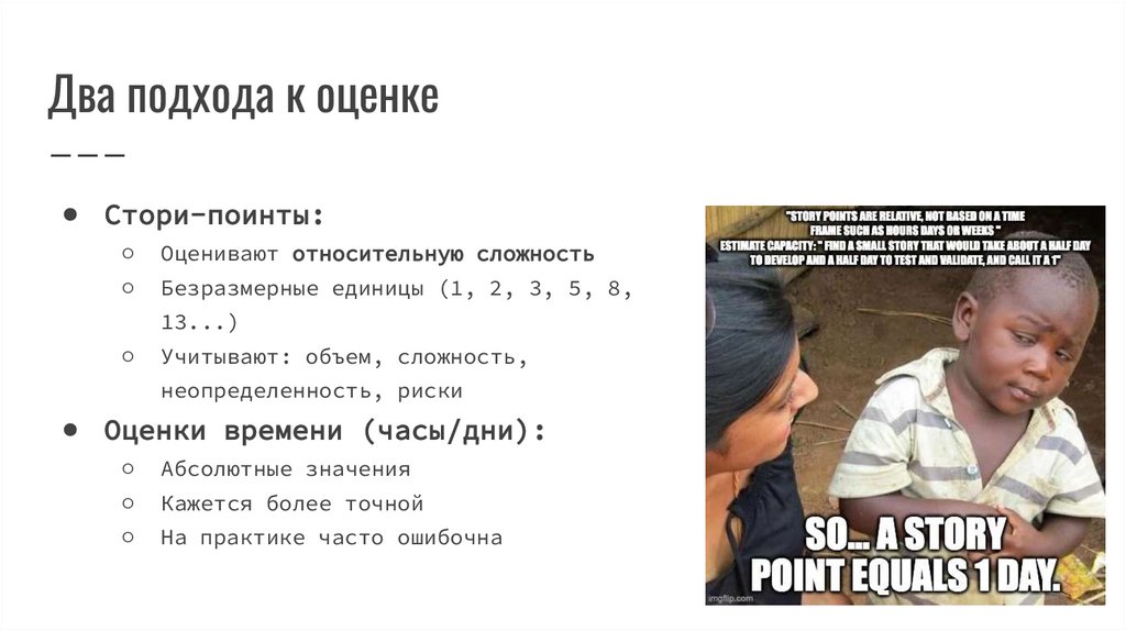 Два подхода к оценке● Стори-поинты: