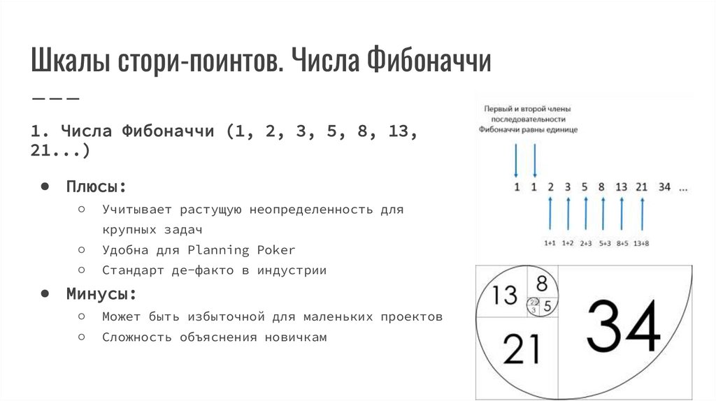 Шкалы стори-поинтов. Числа Фибоначчи1. Числа Фибоначчи (1, 2, 3, 5, 8, 13,