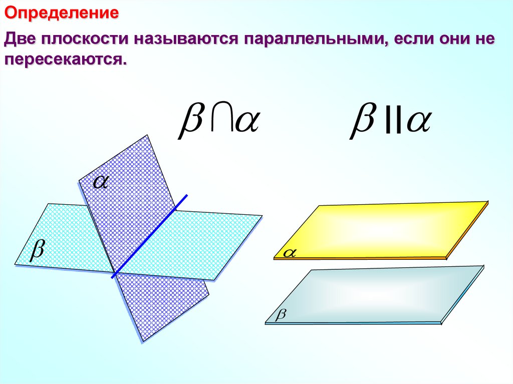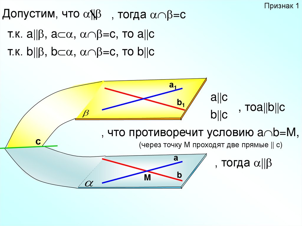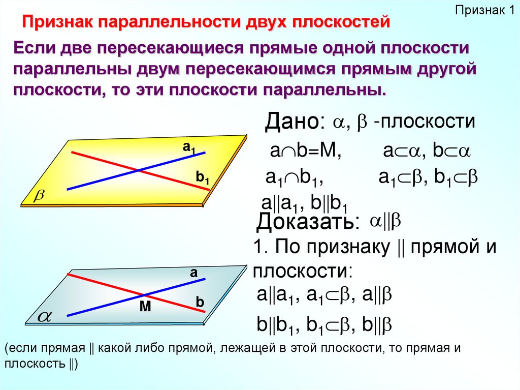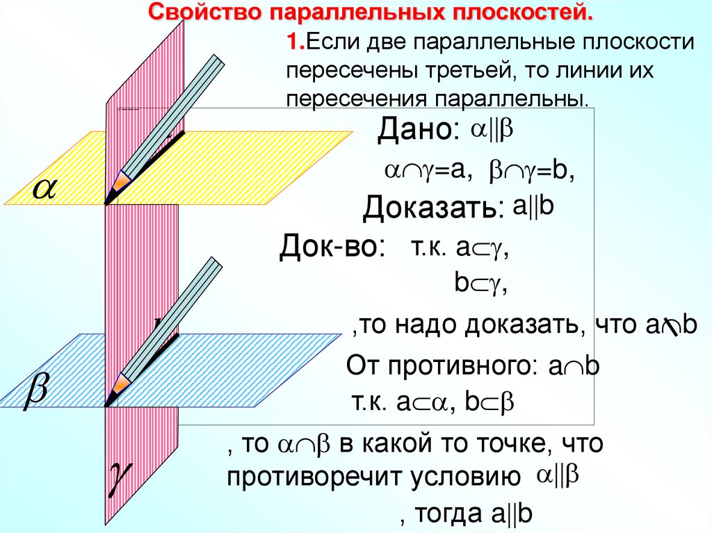 Свойство параллельных плоскостей.1.Если две параллельные плоскости