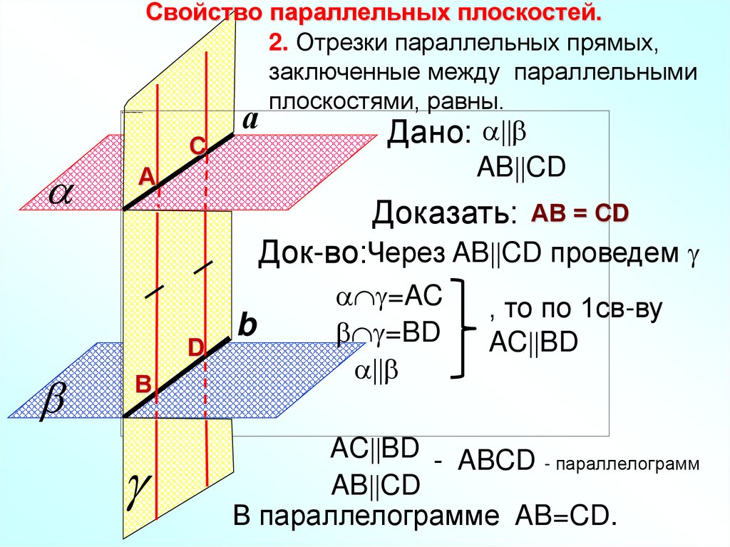Свойство параллельных плоскостей.2. Отрезки параллельных прямых,