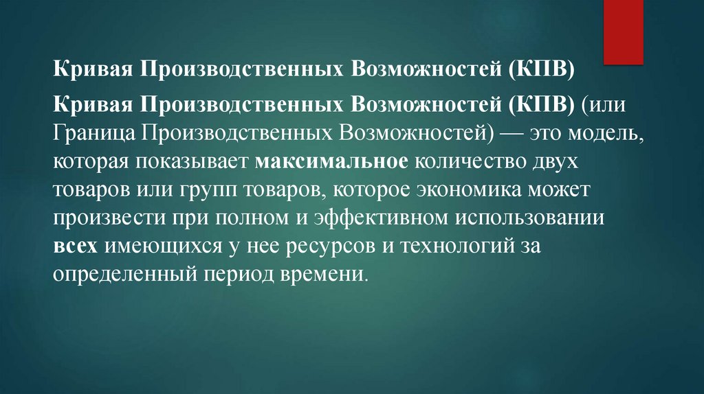 Производственных Возможностей (КПВ)? Изобразите это мысленно и объясните