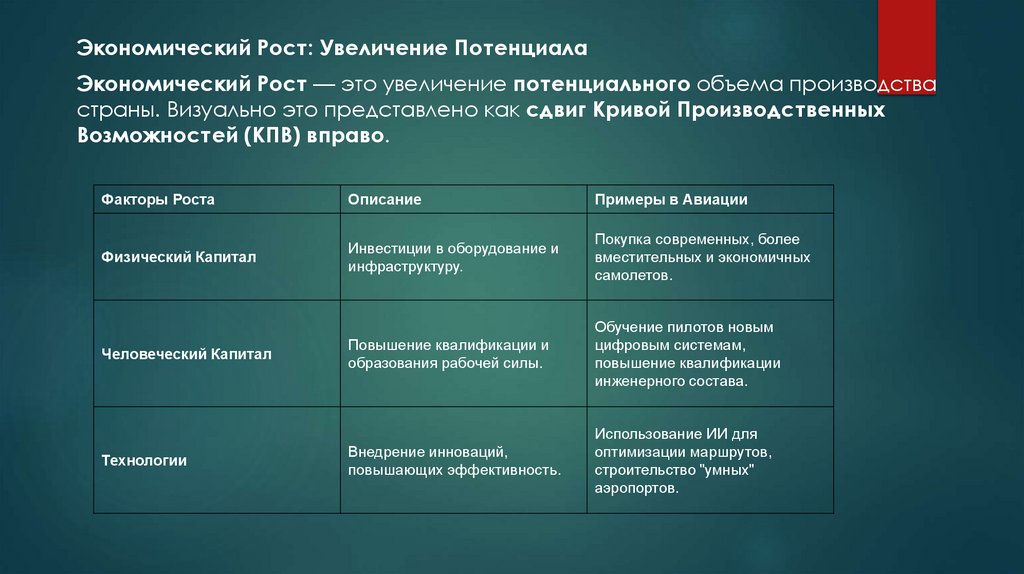 Сдвиг КПВ: Если экономику страны представить как производство "Авиаперевозок" и