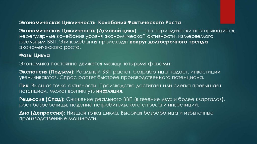 Экономическая Цикличность: Колебания Фактического РостаЭкономическая Цикличность (Деловой цикл) — это периодически повторяющиеся,