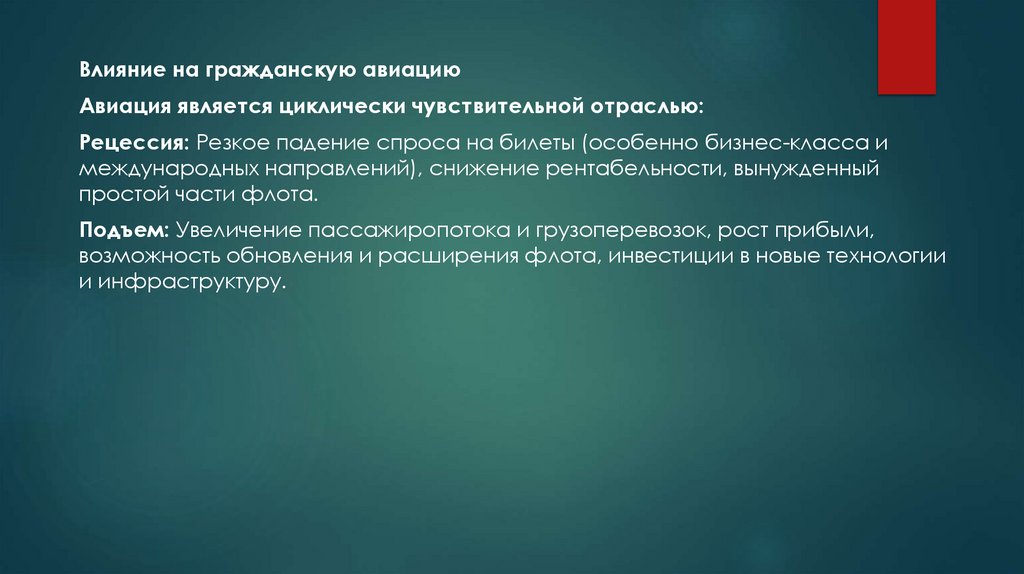 Влияние на гражданскую авиациюАвиация является циклически чувствительной отраслью: