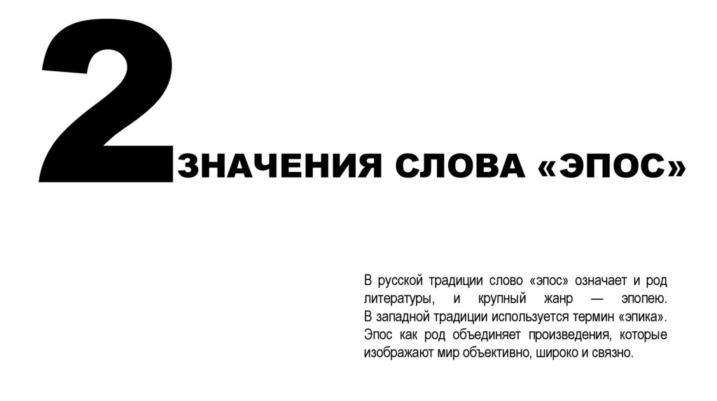 ЗНАЧЕНИЯ СЛОВА «ЭПОѻ русской традиции слово «эпос» означает и род