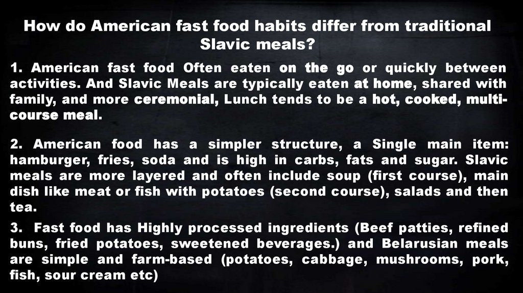 How do American fast food habits differ from traditionalSlavic meals?