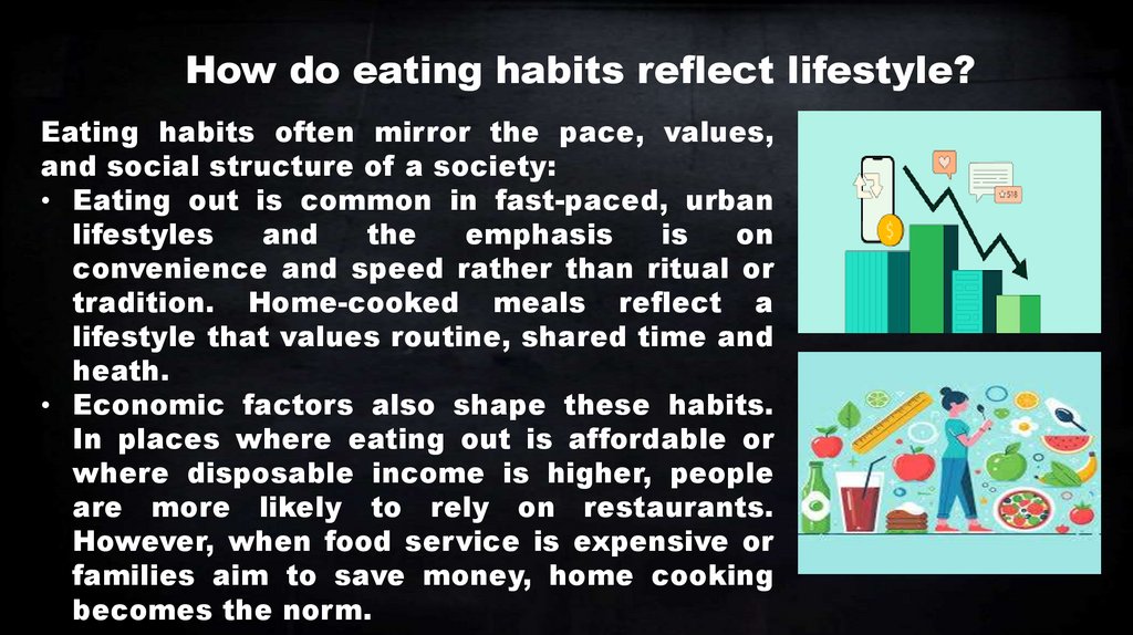 How do eating habits reflect lifestyle?Eating habits often mirror the pace, values,