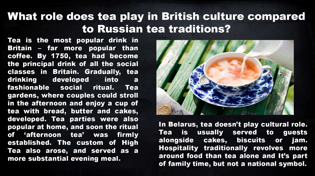 What role does tea play in British culture comparedto Russian tea traditions?