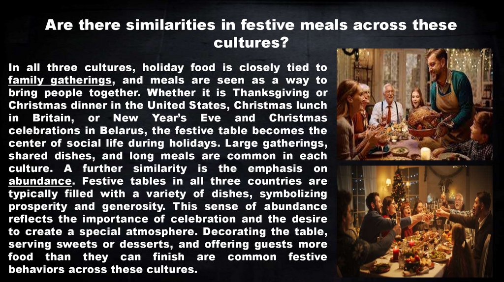 ConclusionOverall, while American, British, and Belarusian festive meals