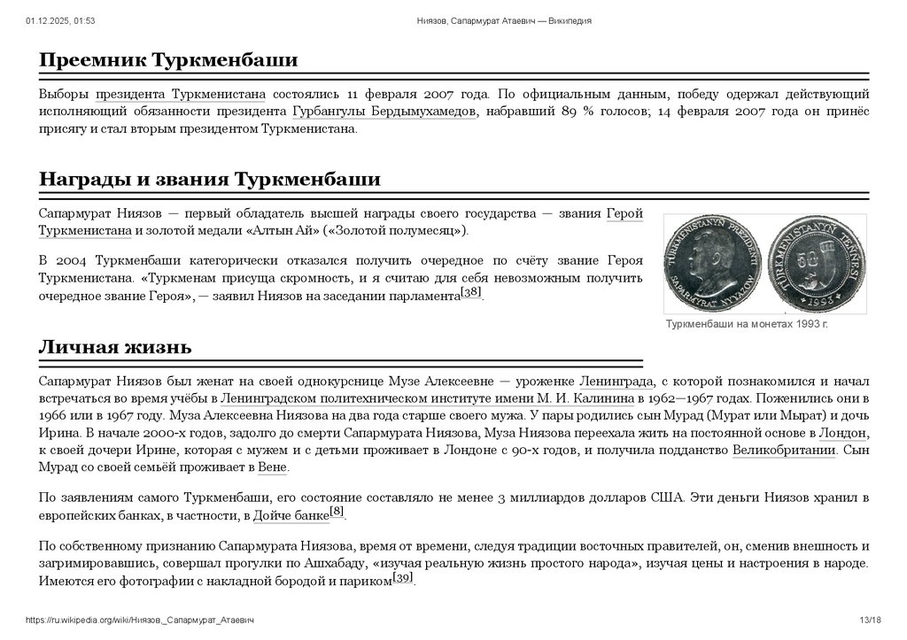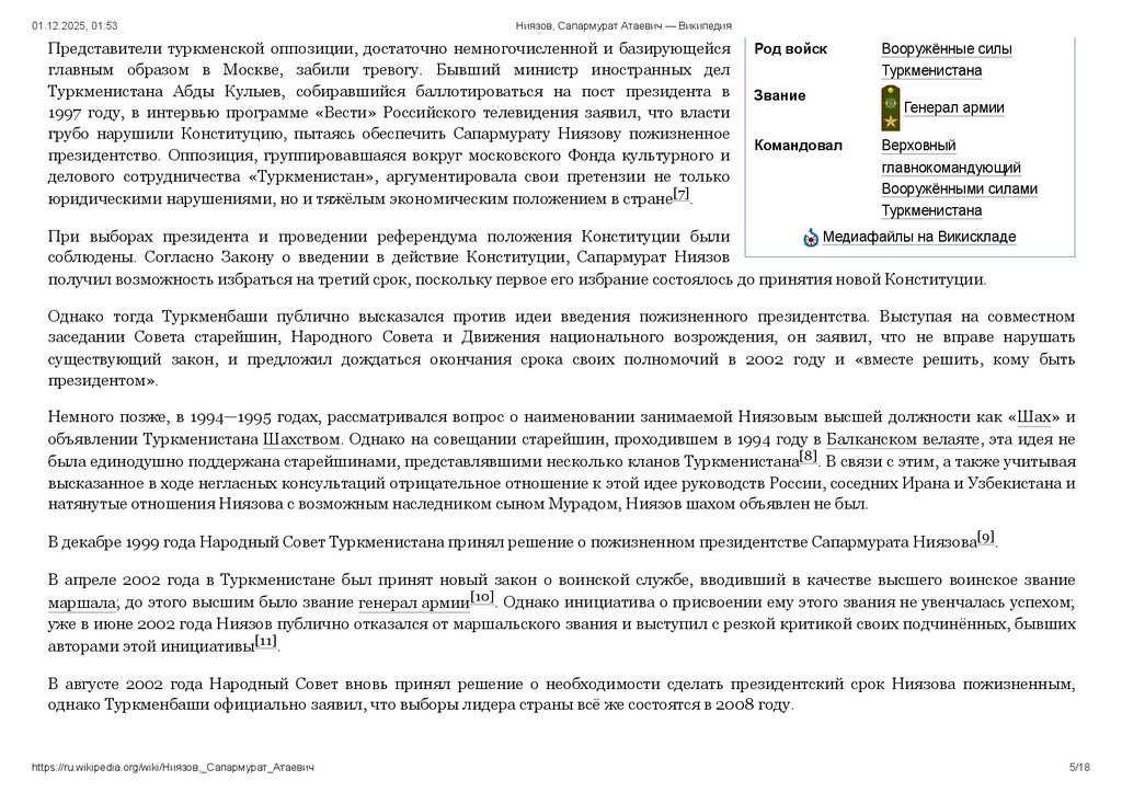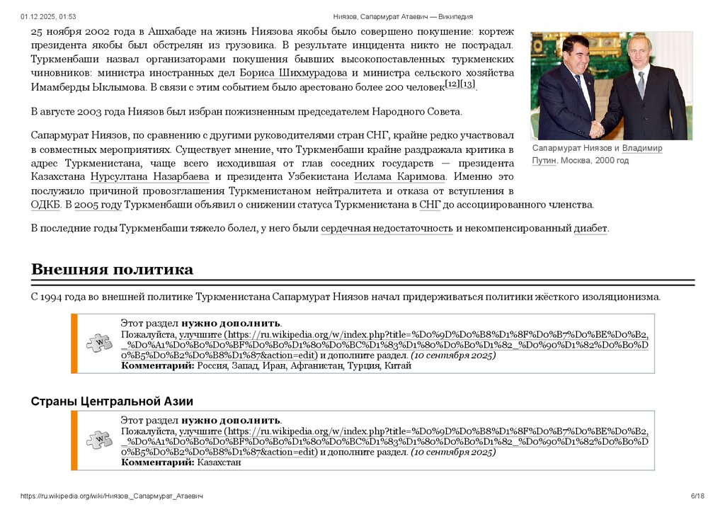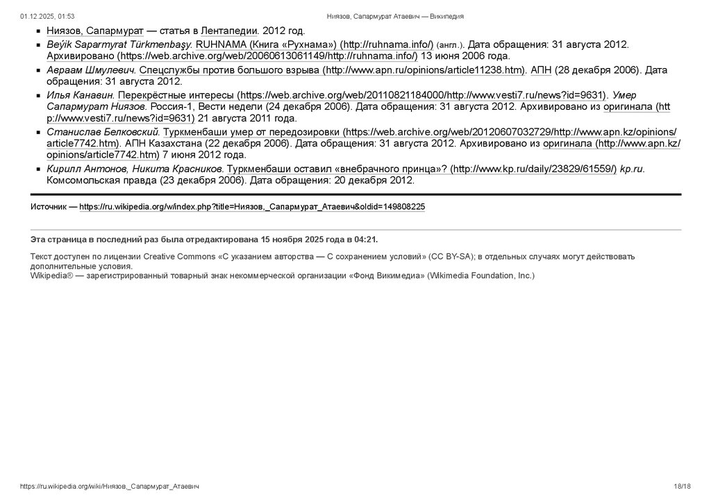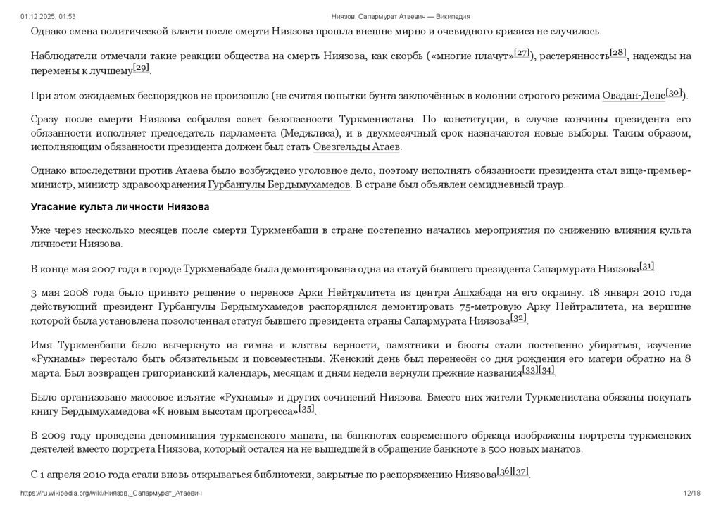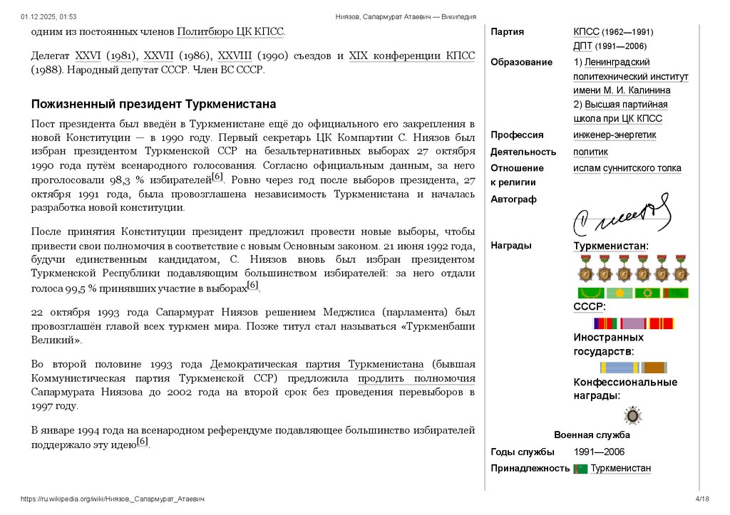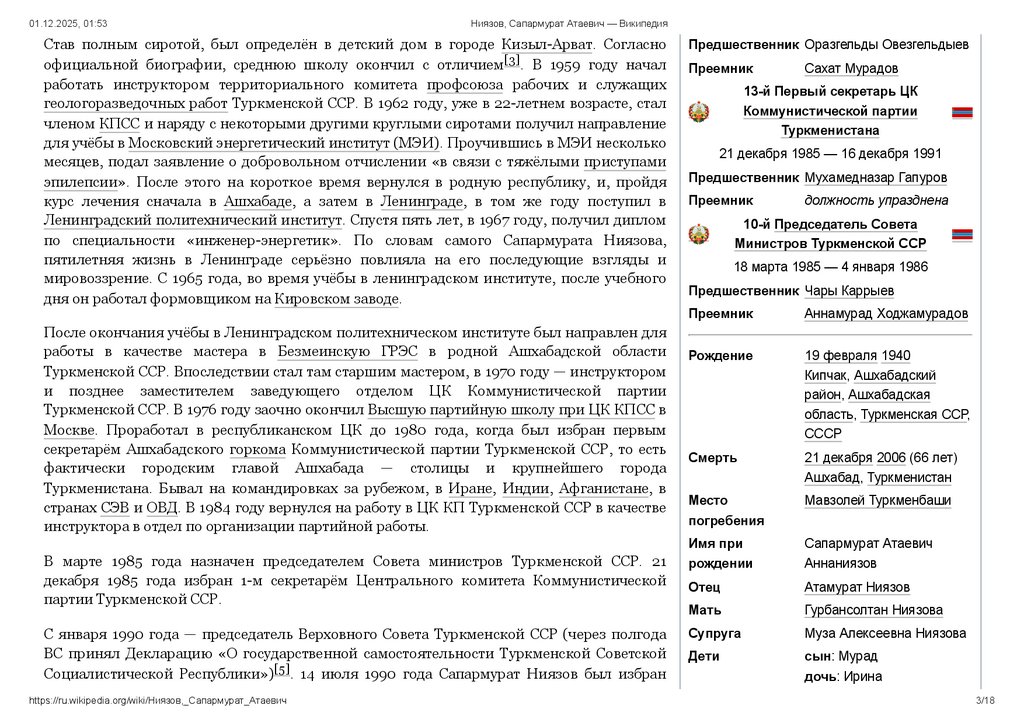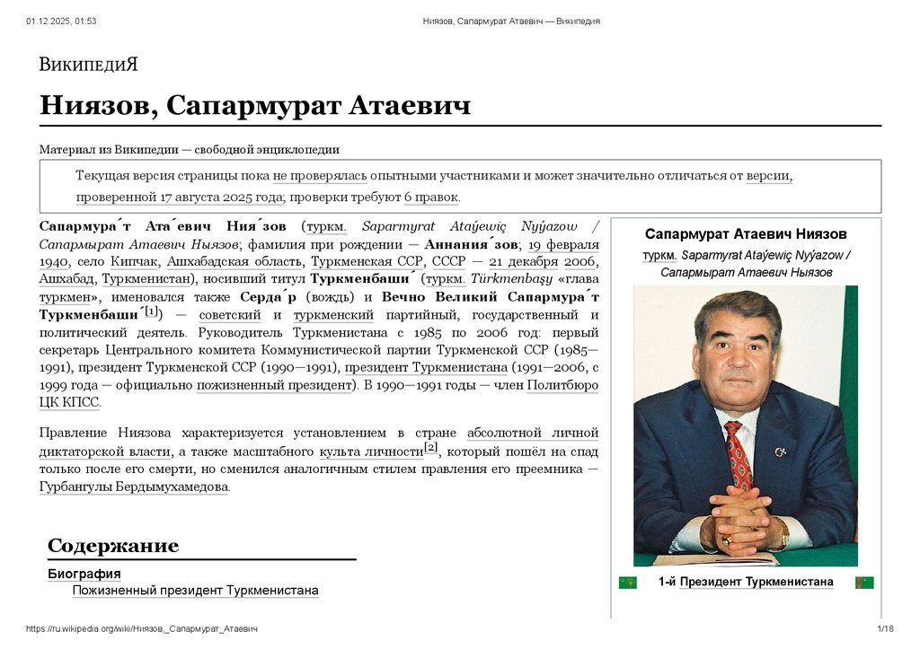 01.12.2025, 01:53Ниязов, Сапармурат Атаевич — Википедия