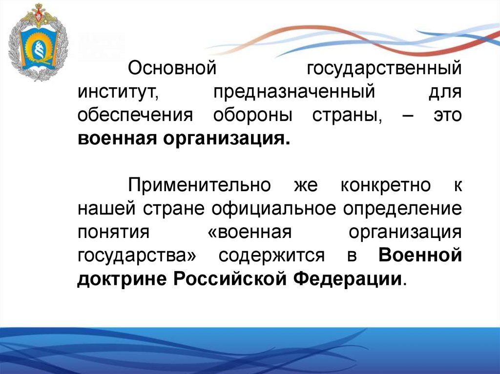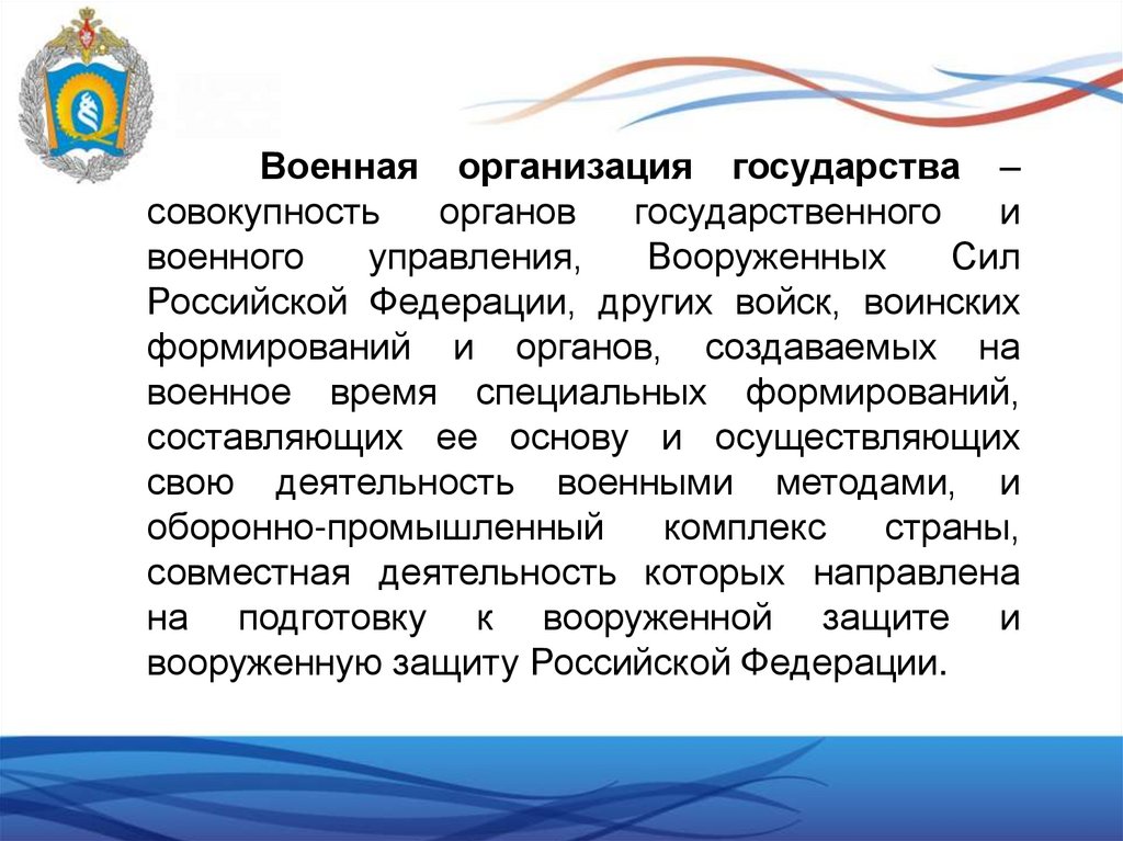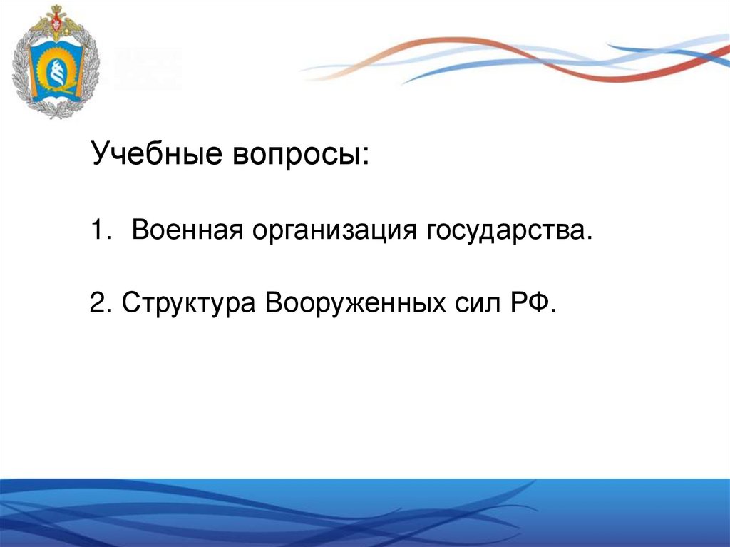 Учебные вопросы:1. Военная организация государства.