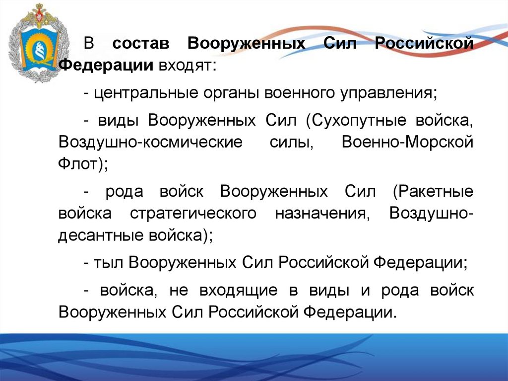 2. Структура Вооруженных сил РФ.