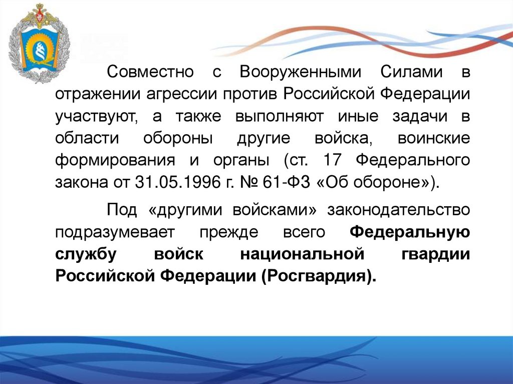 вооруженную защиту Российской Федерации.