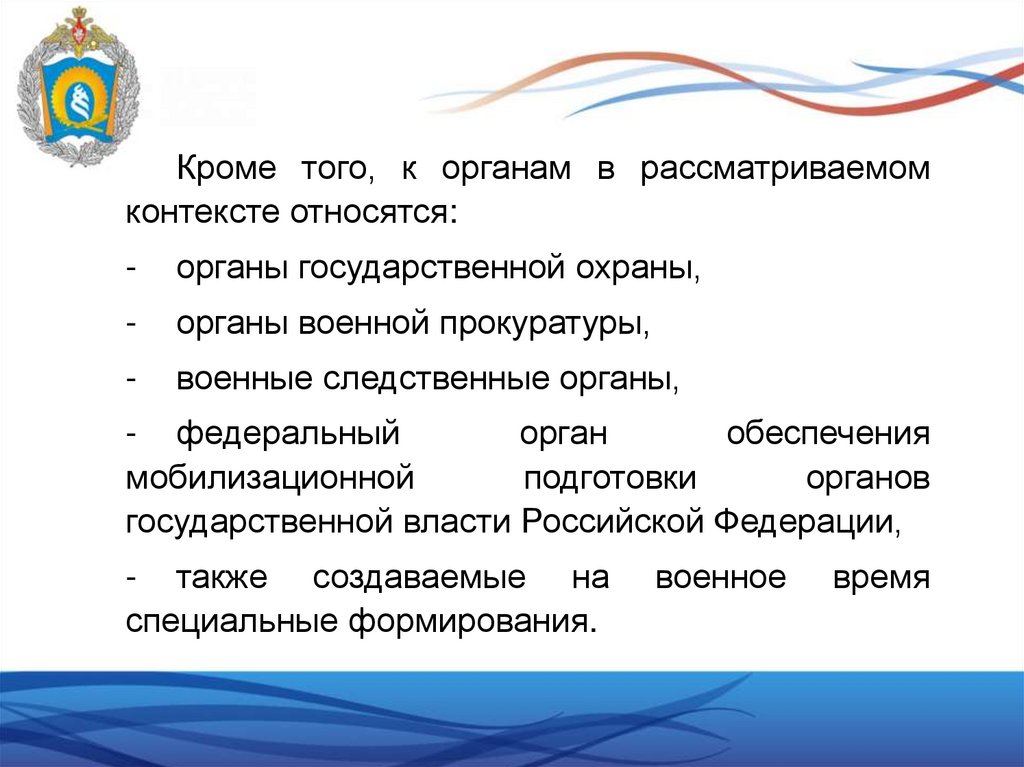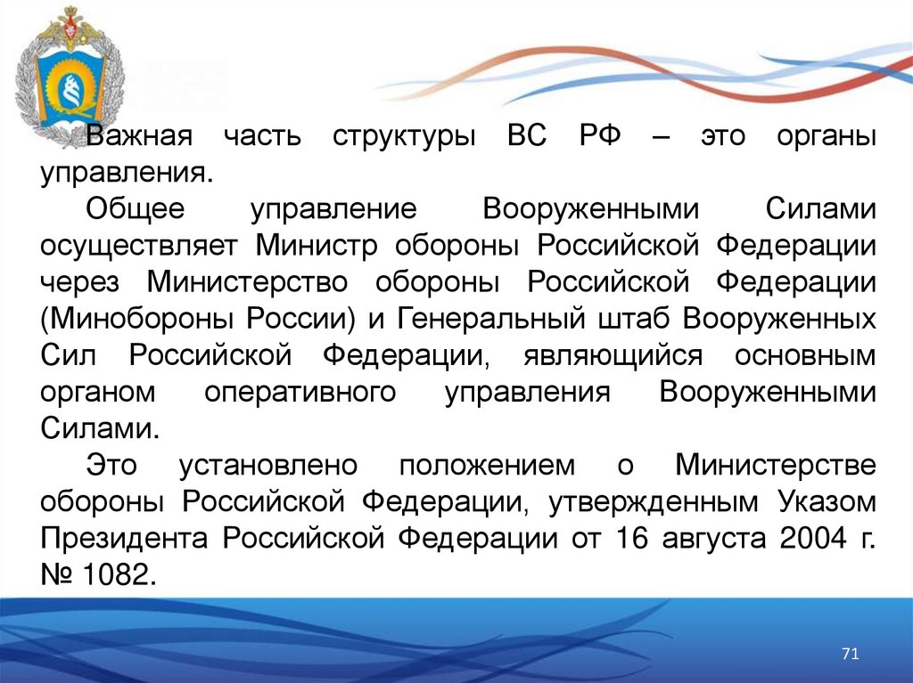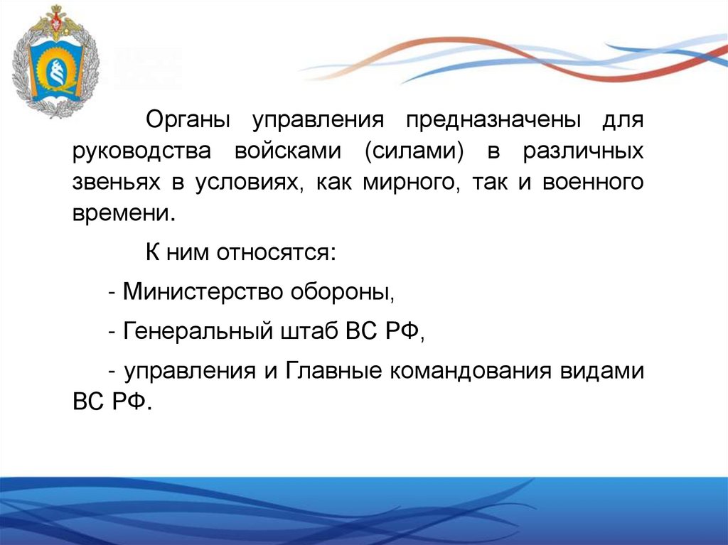 Важная часть структуры ВС РФ – это органыуправления.
