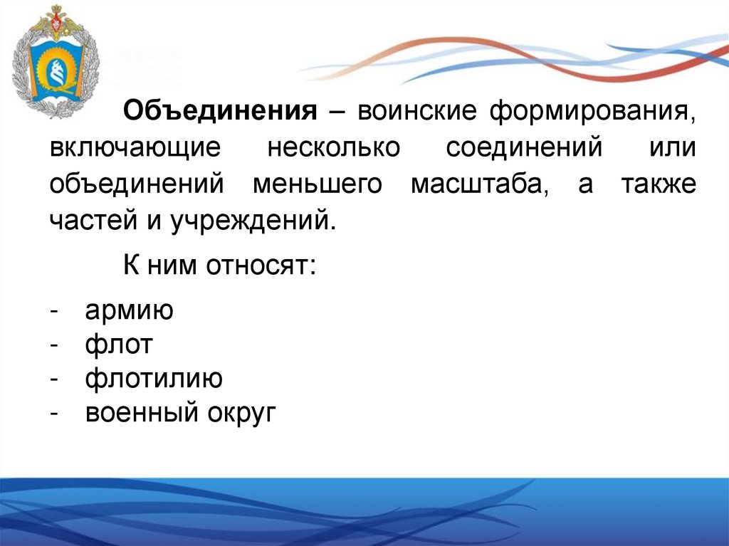 Объединения – воинские формирования,включающие
