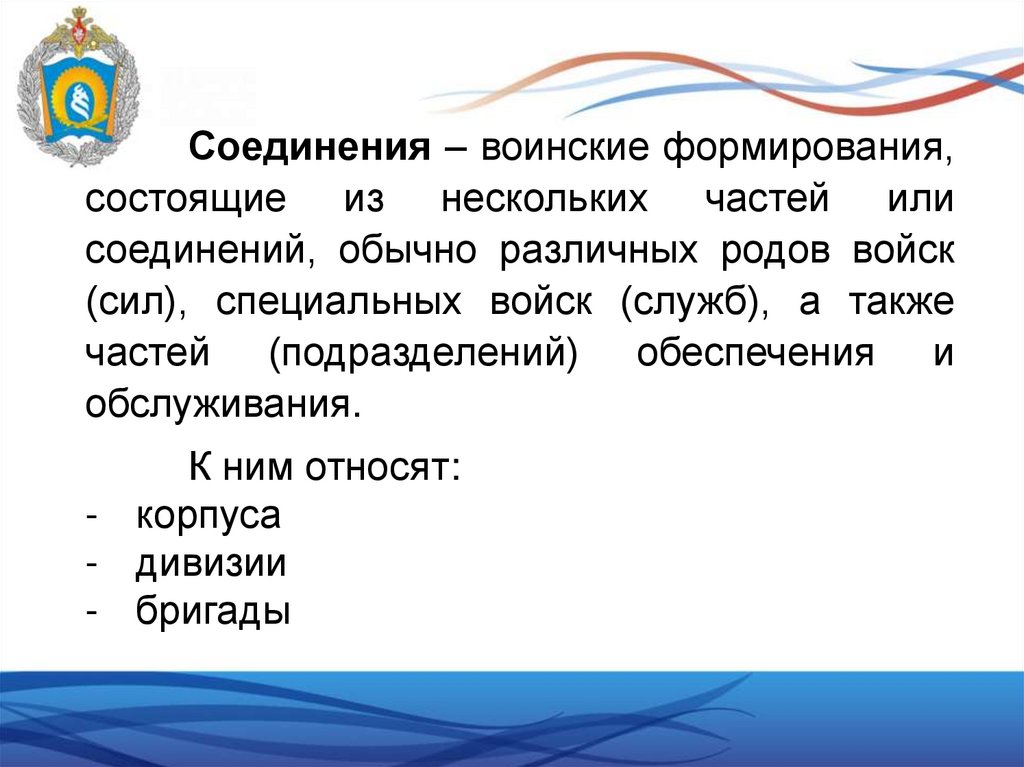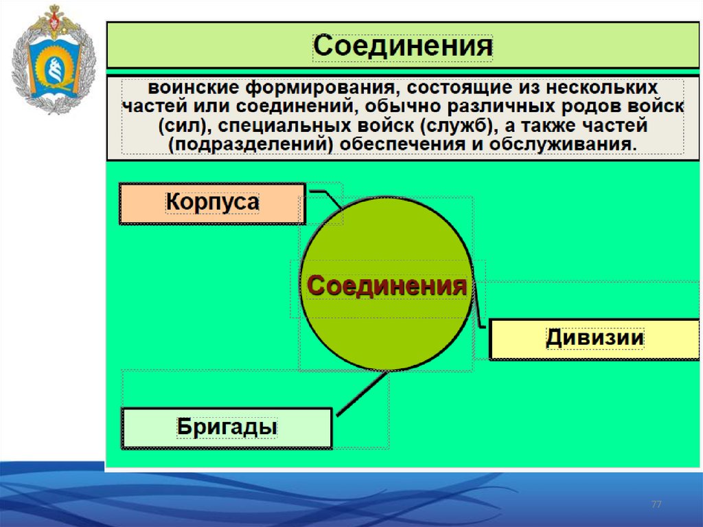 Соединения – воинские формирования,состоящие из нескольких частей или