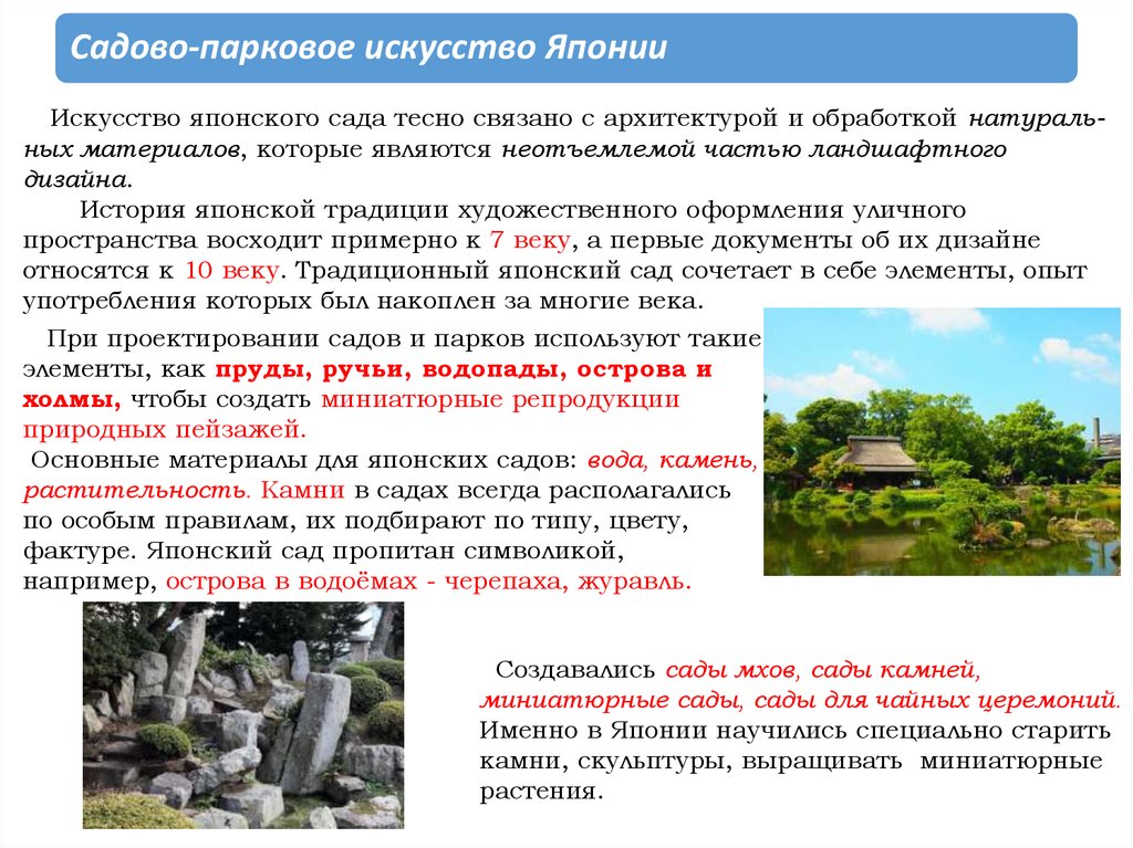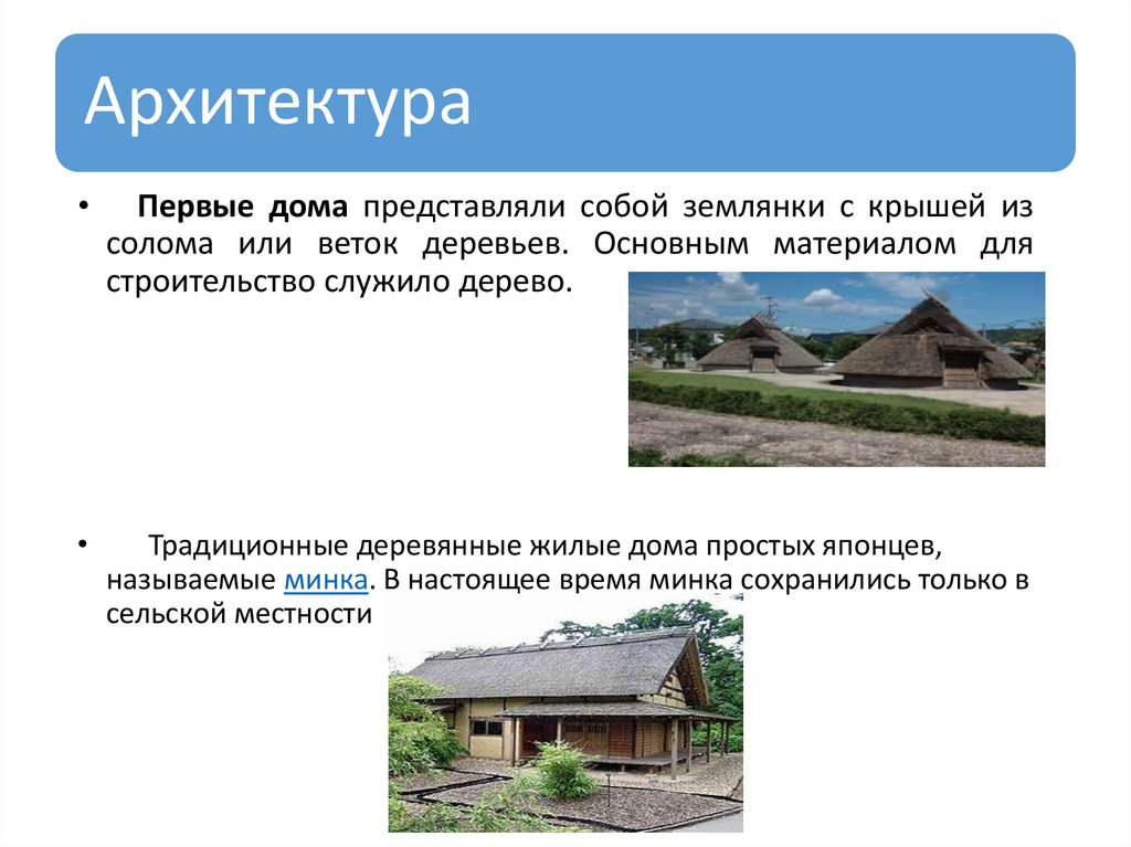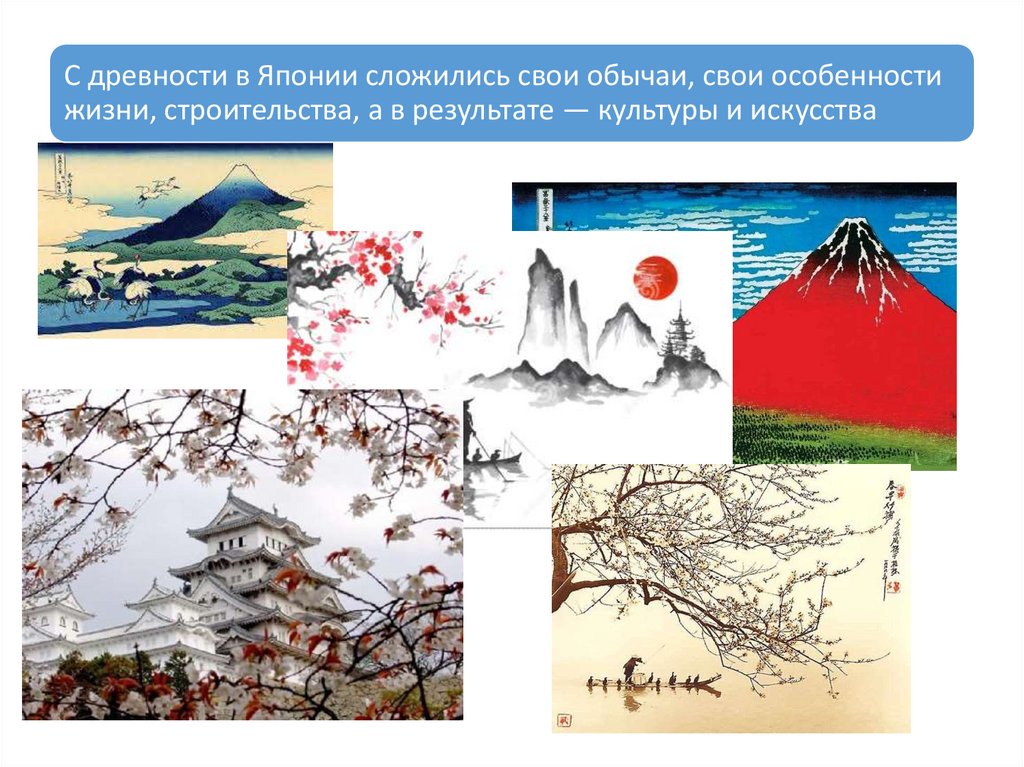 С древности в Японии сложились свои обычаи, свои особенностижизни, строительства, а в результате — культуры и искусства