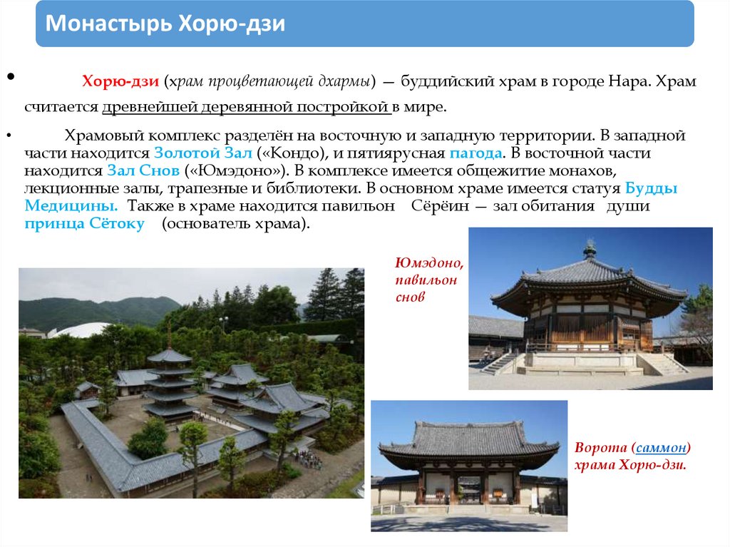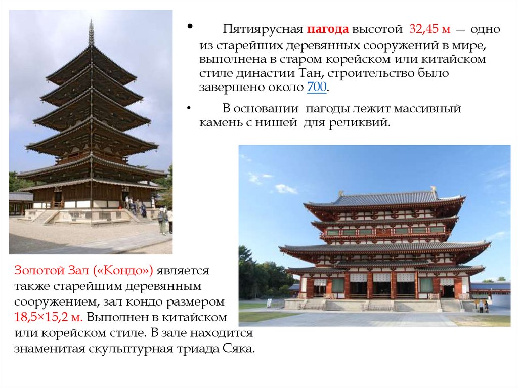 7. С конца VI в., когда в Японию из Китая и Кореи проник буддизм, началось строительство буддийских деревянных храмов и высоких
