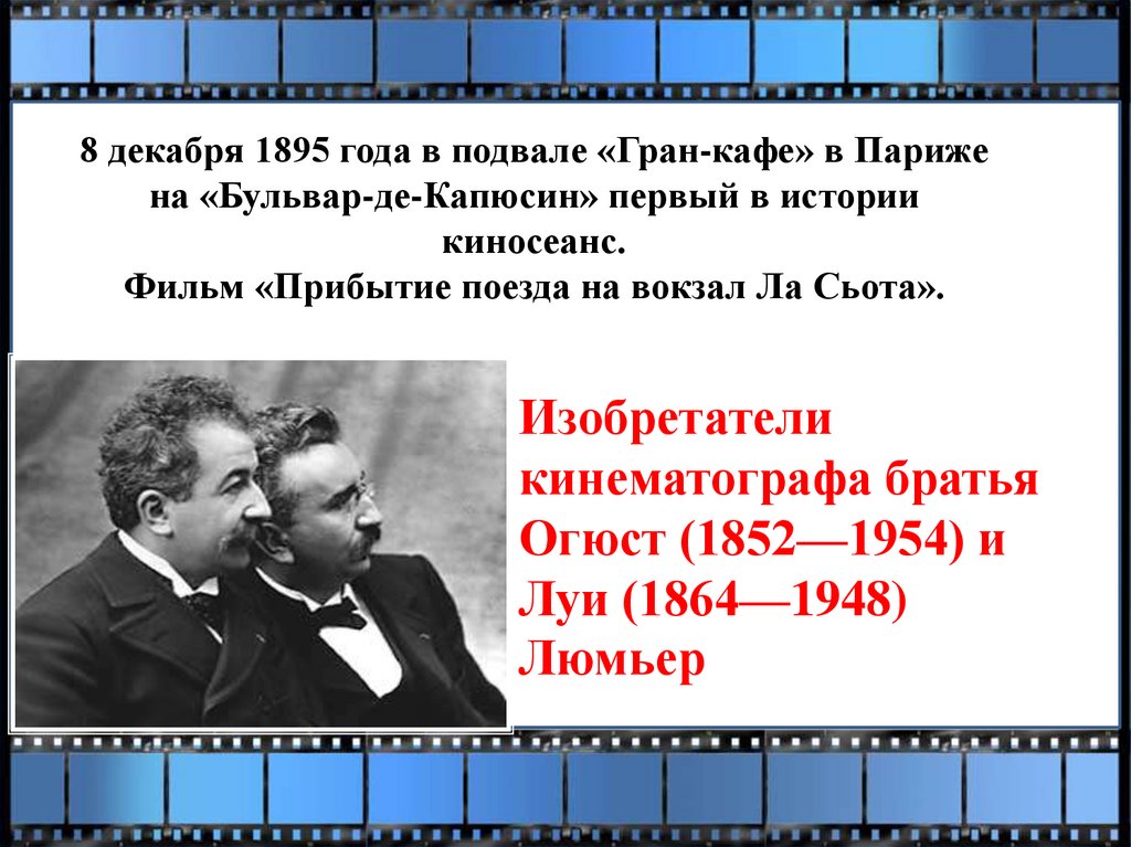 8 декабря 1895 года в подвале «Гран-кафе» в Парижена «Бульвар-де-Капюсин» первый в истории