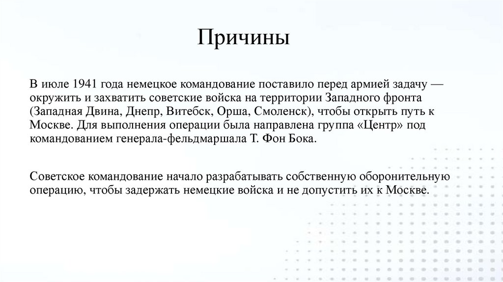 ПричиныВ июле 1941 года немецкое командование поставило перед армией задачу —