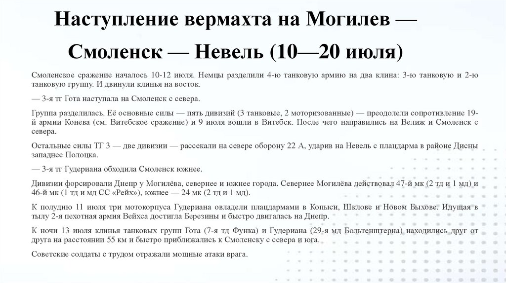 Наступление вермахта на Могилев —Смоленск — Невель (10—20 июля)