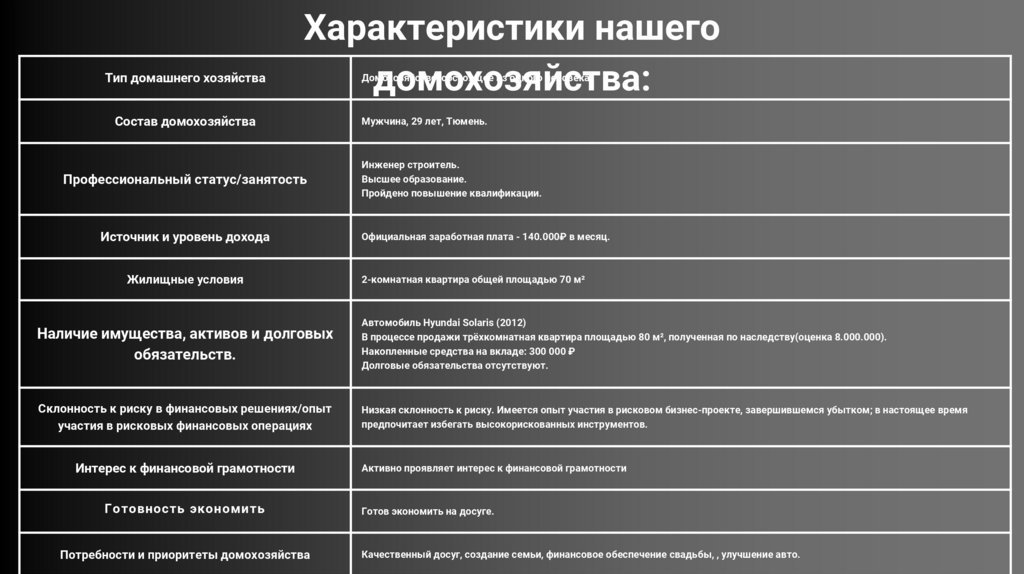 Тип домашнего хозяйстваХарактеристики нашего
