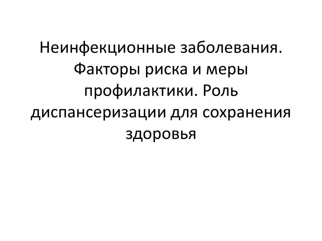1. Неинфекционные заболевания. Факторы риска и меры профилактики. Роль диспансеризации для сохранения здоровья