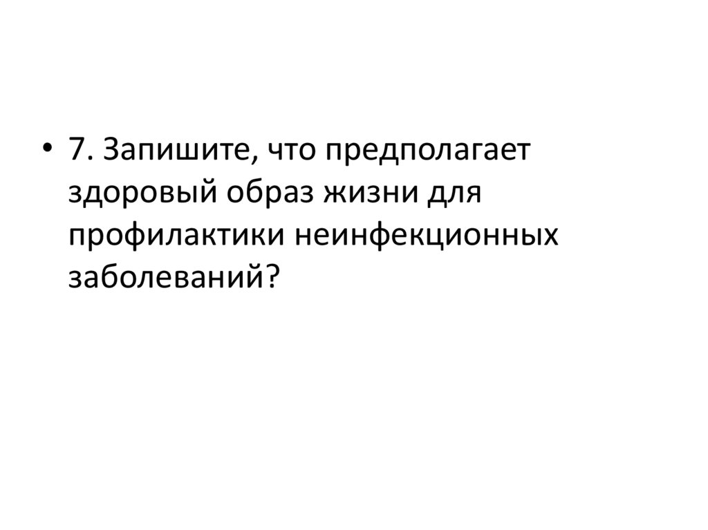 • 7. Запишите, что предполагаетздоровый образ жизни для