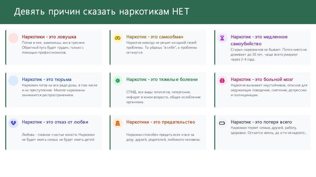 Девять причин сказать наркотикам НЕ ТНаркотики - это ловушка