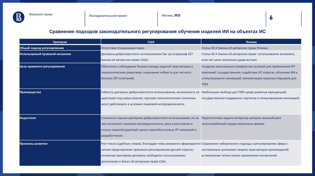 Сравнение подходов законодательного регулирования обучения моделей ИИ на объектах ИС