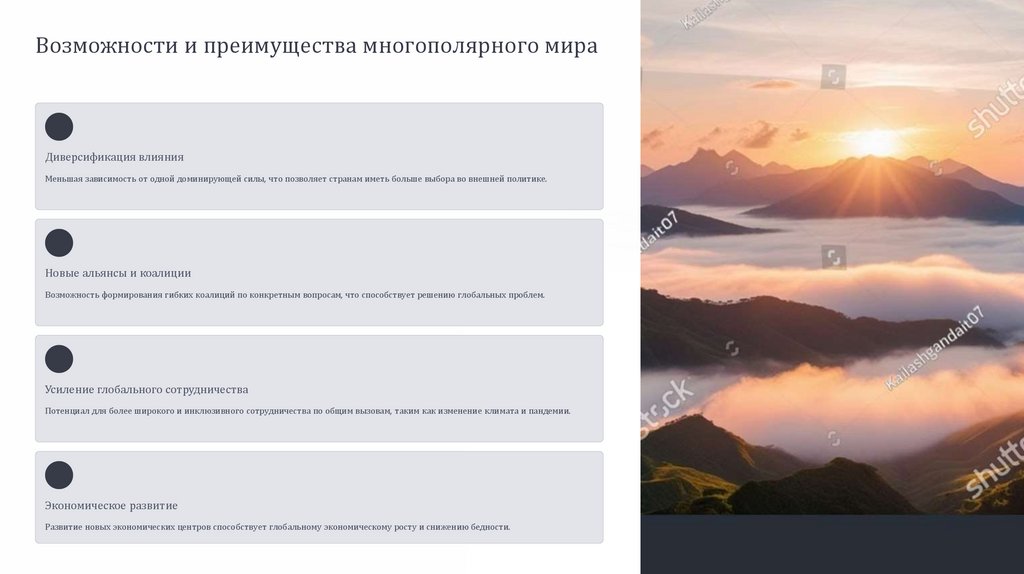 Меньшая зависимость от одной доминирующей силы, что позволяет странам иметь больше выбора во внешней политике.