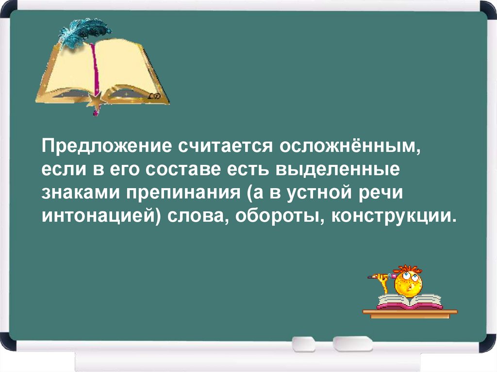 Предложение считается осложнённым,если в его составе есть выделенные