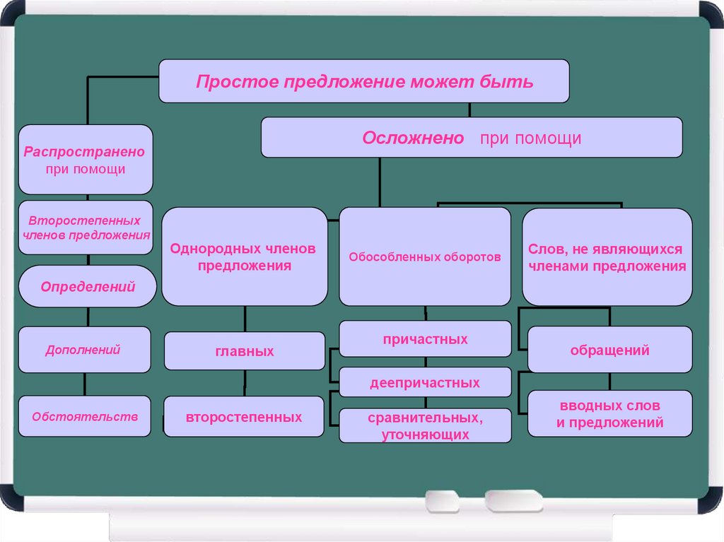 Простое предложение может бытьОсложнено при помощи