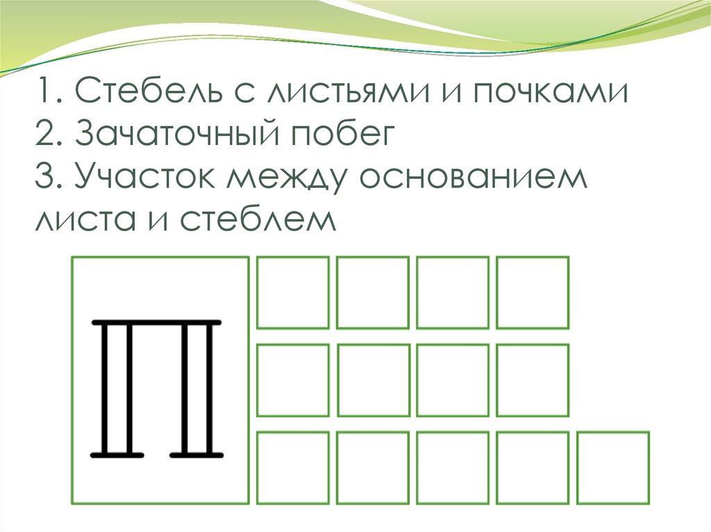 1. Стебель с листьями и почками2. Зачаточный побег
