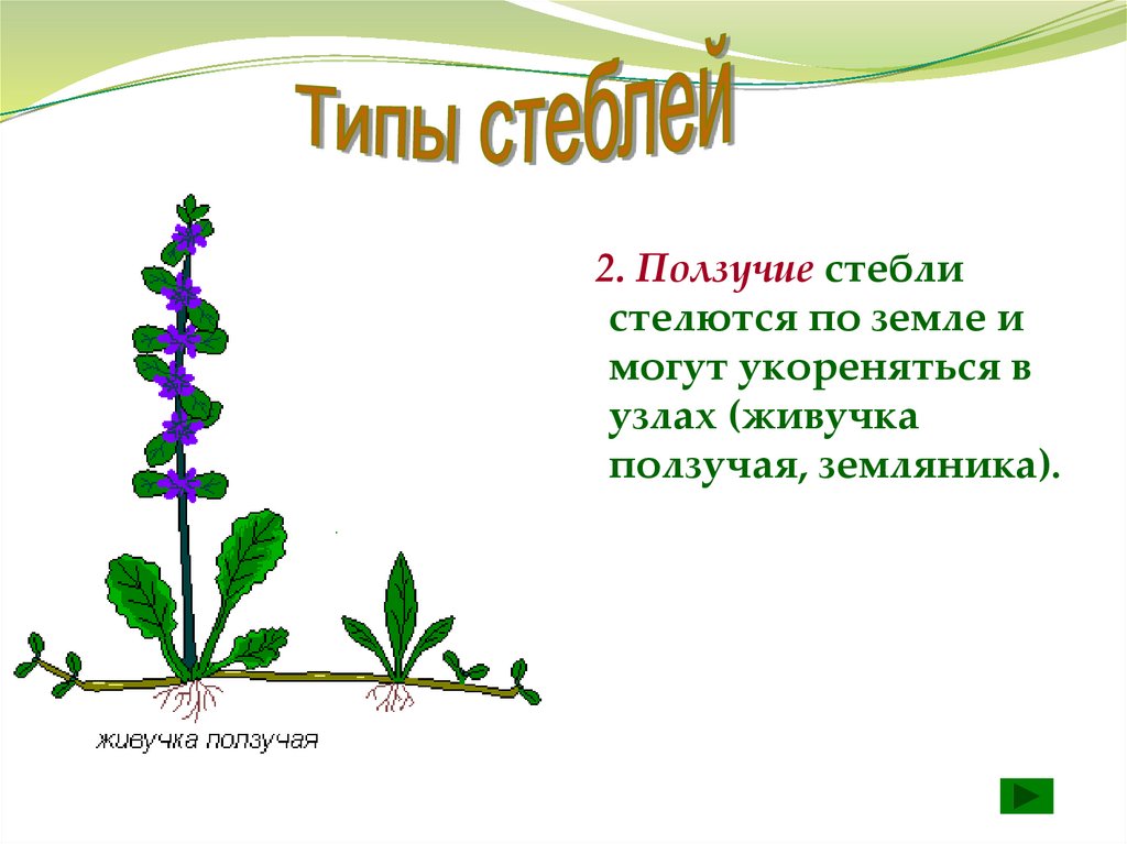 2. Ползучие стеблистелются по земле и