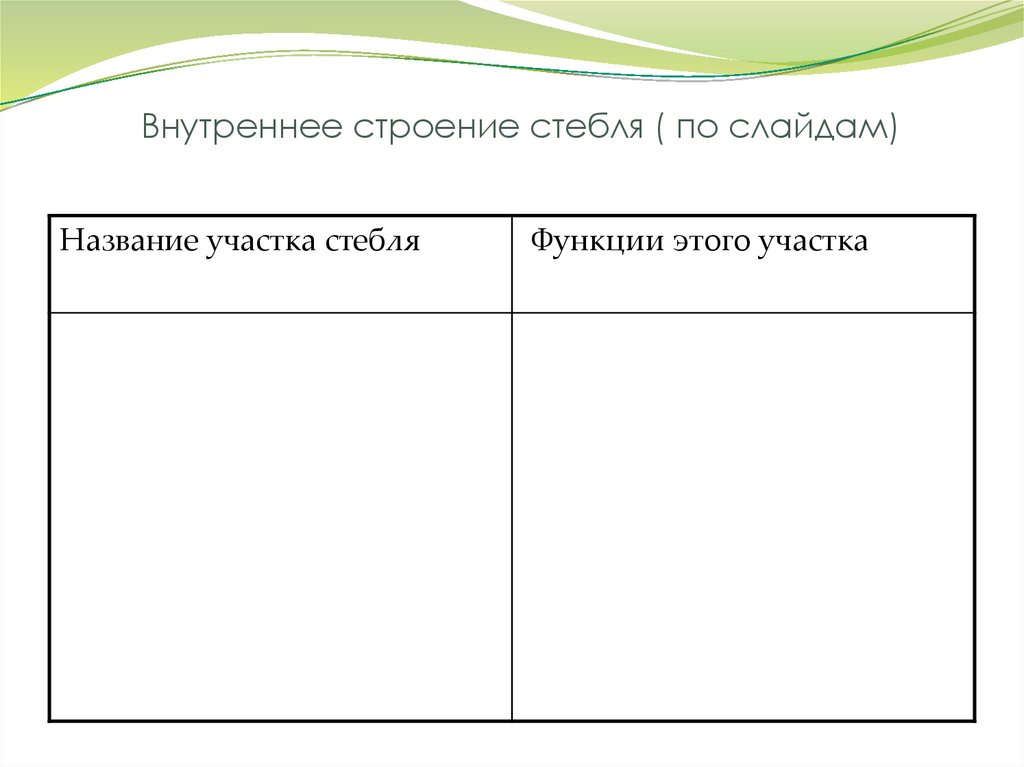 Внутреннее строение стебля ( по слайдам)Название участка стебля